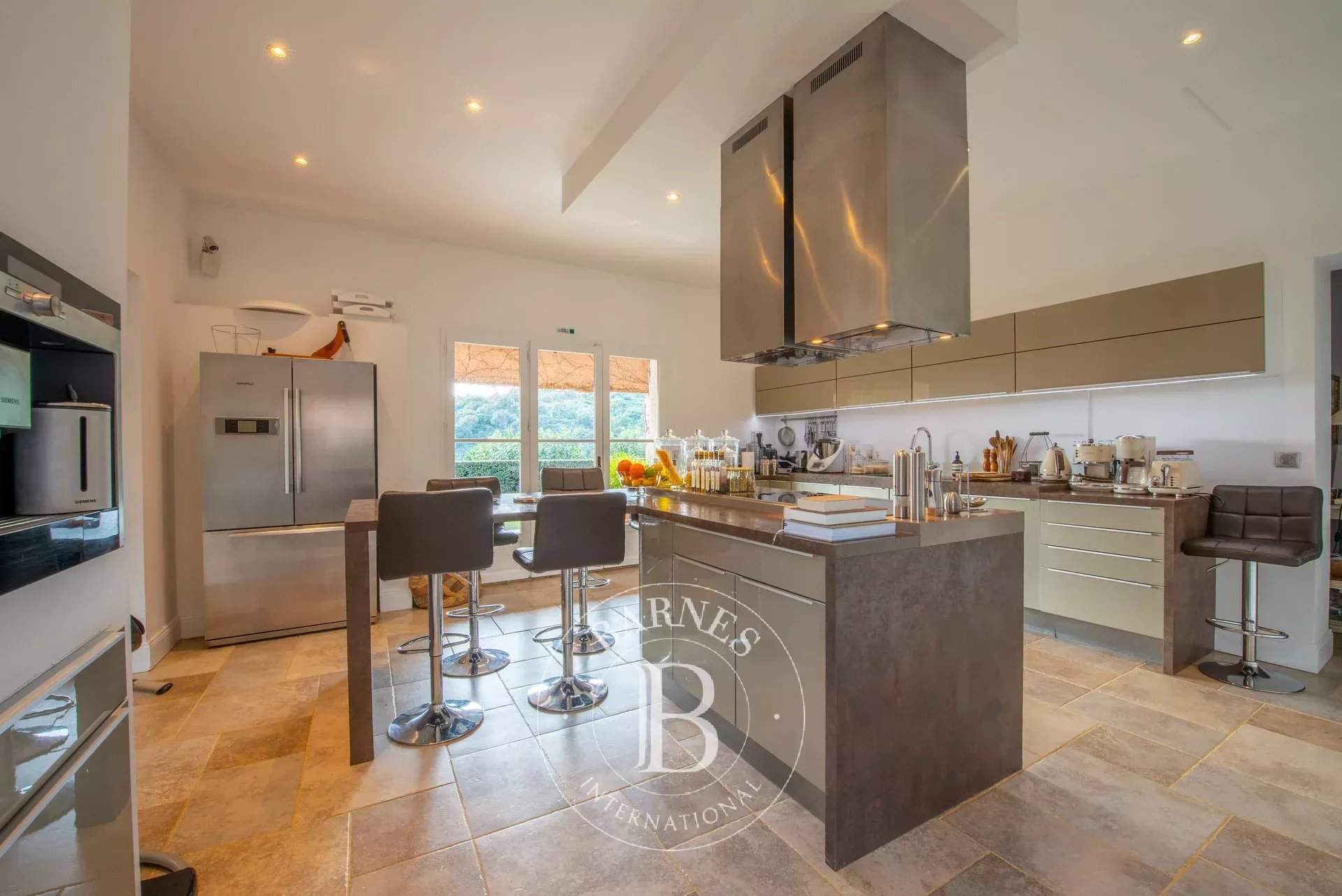 In a private estate on the heights of Grimaud, sublime property on a one-hectare plot with 600 sqm of living space, benefiting from a strategic geographical location due to its absolute calm, yet just a few kilometers from the beach and the village of Saint-Tropez. On the 1st level, the main villa comprises a living/dining room opening onto the open-plan kitchen, terraces and saltwater swimming pool. This is followed by two en suite bedrooms with dressing rooms and bathrooms, and a view of the pool. Opposite, three en suite bedrooms with dressing rooms and their own bathrooms, plus an en suite service/TV room. On the 2nd level, two master bedrooms en suite with dressing rooms, terraces and views of the hills. Outside, a final independent en suite bedroom completes the property. Facilities : Goods elevator, Salt-heated pool (on request and at extra charge), barbecue, parking, electric gate, TV, air conditioning, pétanque court, helipad. Services included: regular housekeeping, household linen, pool towels and personalized concierge service.