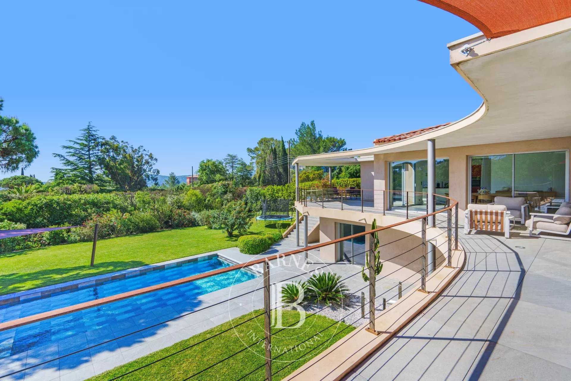 * Villa Louna * Located close to Saint-Tropez, in the commune of Grimaud, this 250 sqm (2691 sq. ft.) house is just a few minutes from the beach. The ground floor comprises a living room opening onto a dining room and a fitted kitchen, with a large terrace overlooking the swimming pool. The garden level features a master suite with dressing room, shower room and balneotherapy bath, plus three bedrooms with two shower rooms. Outside, there is a wooded garden of around 2,040 sqm (21958 sq. ft.), a swimming pool, parking for 3 cars and a petanque area. Services included: Cleaning, household linen and personalised BARNES concierge service. Registration number : pending