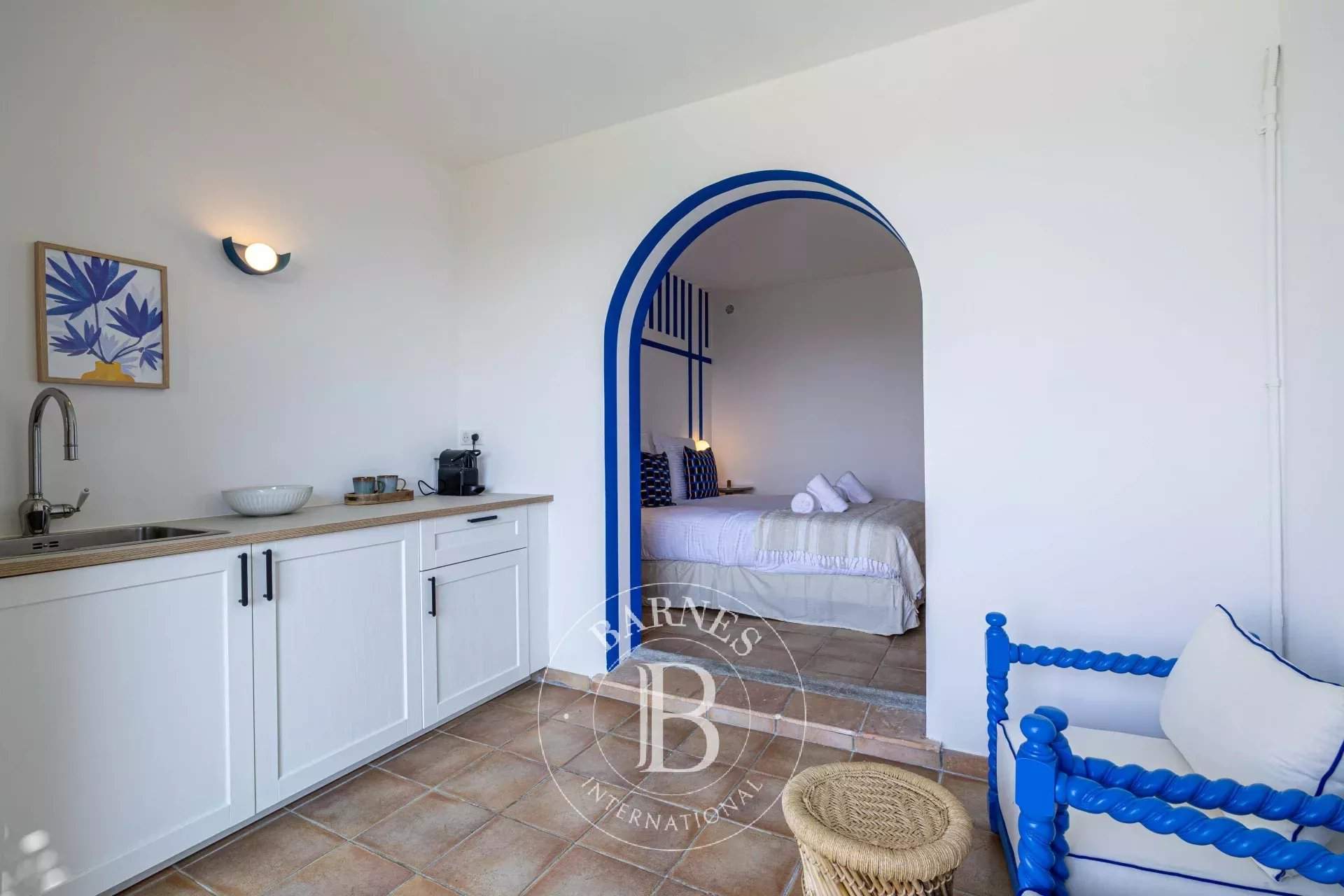 * Villa Natoli * This 500 sqm (5382 sq. ft.) villa is ideally located in Grimaud, just a few minutes from the port. The property offers several living areas and twelve en-suite bedrooms with en-suite shower rooms. Some of the rooms have kitchenettes and sitting rooms, spread across several outbuildings. The property is equipped with a dormitory, a gym and a nightclub. Outside, there are several relaxation areas and terraces adapted to a large capacity, a bar, a jacuzzi, a solarium, a swimming pool, a padel court and an outdoor children's play area. Facilities: air conditioning, parking, wifi, barbecue. Services included: entrance cleaning, household linen and personalised BARNES concierge service. Accommodation number: 83068001674VZ