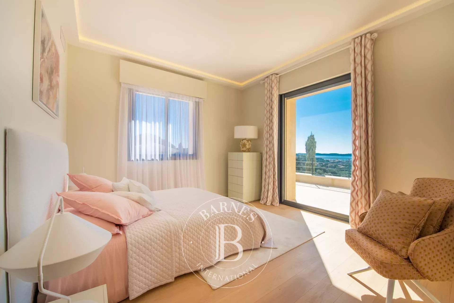 * Château Du Soleil * Situated in a quiet environment close to the town center, this prestigious property is built in a dominant position with a view of the sea and the Gulf of Saint-Tropez. This private mansion offers 545 sqm (5866 sq. ft.) of living space in two fully renovated buildings, set in 5.5 hectares of grounds. The property comprises a large reception room with a double lounge and dining room, a fully equipped kitchen and eight en suite bedrooms, each with its own shower room. It also features a wine cellar, gym, spa and hammam. Outside, a very large garden out of sight, a summer kitchen, two swimming pools, a pool house, direct access to a helipad and a large garage with room for several cars. Facilities: Air conditioning throughout the property, alarm system, electric gate, parking spaces. Services included: Housekeeping, linen and personalized BARNES concierge service. Registration number 83115004244HT
